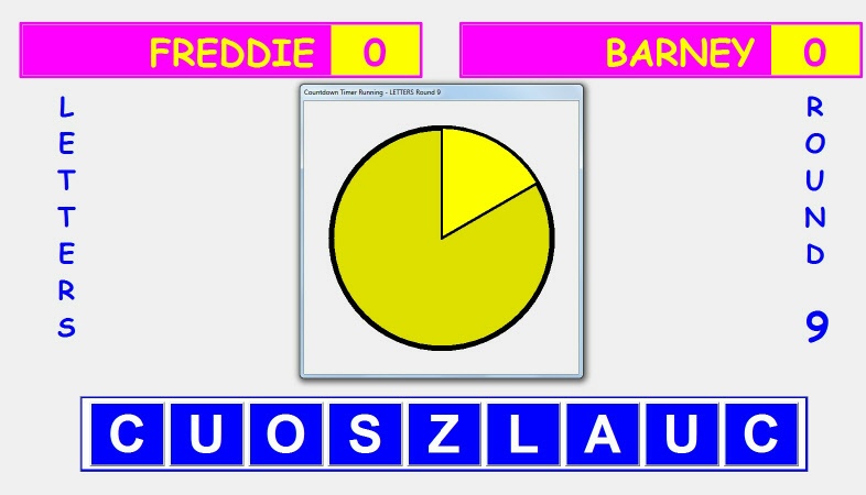 The Testing setting: This is a Y/N setting which when set to Y begins the game at the last letters round (round 9) followed by the final numbers round (round 3) and then the conundrum. Setting it to N causes the game to play the full 13 rounds as described above. I left what was originally my ‘testing facility’ accessible in case hosts might want to offer a quick practice run before playing a full game (or use it for practice themselves).